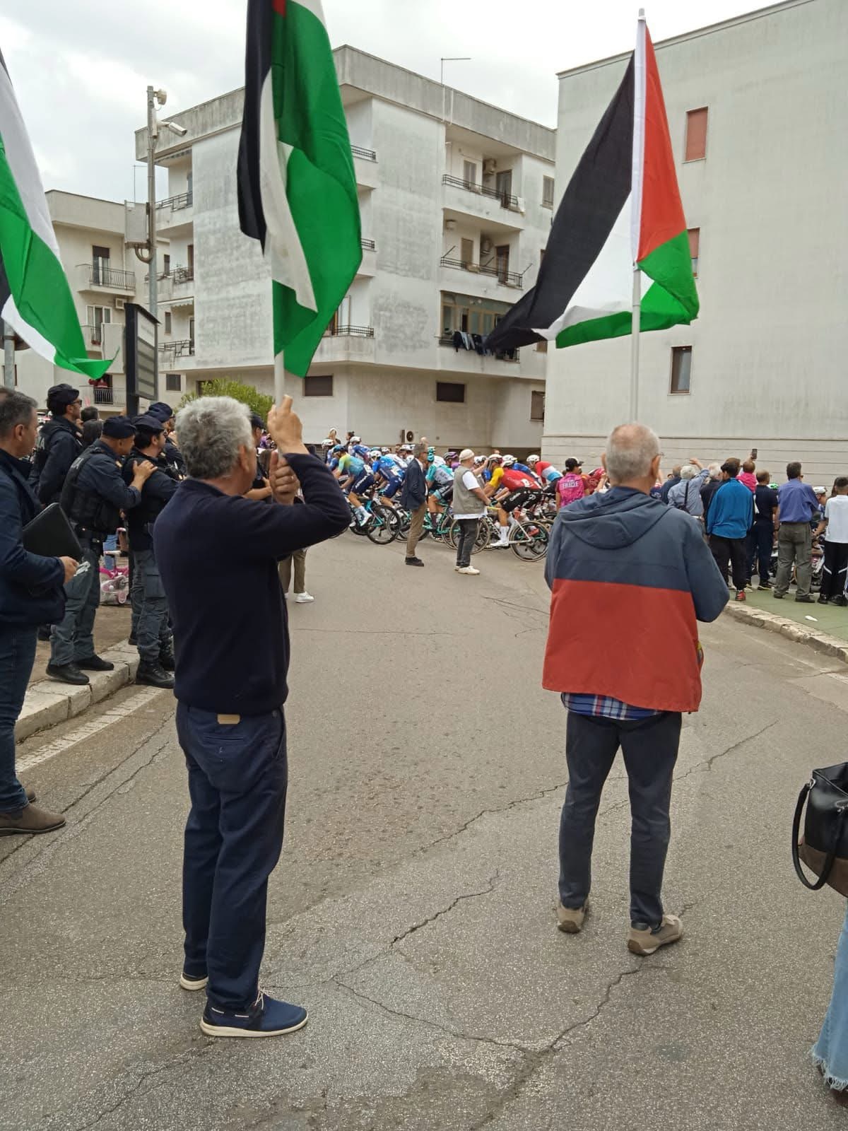 Nonostante TV e media a Ceglie Messapica (BR) abbiano nascosto la presenza dei militanti pacifisti che protestavano con le bandiere palestinesi, contro l’esclusione degli atleti palestinesi, dal Giro d’Italia, mentre al contrario la squadra del criminale stato Israeliano era vergognosamente presente. Ma soprattutto i pacifisti con le bandiere palestinesi, erano presenti per ricordare agli atleti e al popolo tutto, che Israele ha già massacrato dal 7 ottobre ad oggi, più di 50.000 palestinesi, 20.000 dei quali bambini. Un vero e proprio genocidio. Non solo ma Netanyahu, ha dichiarato che nessuna casa rimarrà in piedi a Gaza. Così potrà in un sol colpo operare la pulizia etnica, espellendo fuori dalla loro terra due milioni di palestinesi. Il governo americano, la Unione europea, il governo Italiano, sono sostenitori di questa immonda Soluzione Finale, attuata con le nostre armi ed il sostegno politico contro le risoluzioni di condanna dell’ONU e del TRIBUNALE PENALE INTERNAZIONALE. Bisogna fermare il massacro, bisogna scendere in piazza, bisogna risvegliare la coscienza Umana. Il prossimo appuntamento ci vedrà a Brindisi, sabato 17 maggio alle ore 17.30, per un grande, pacifico corteo, che chieda la fine dei bombardamenti con l’arrivo dei medicinali e del cibo per salvare i BAMBINI e l’intera popolazione di GAZA.