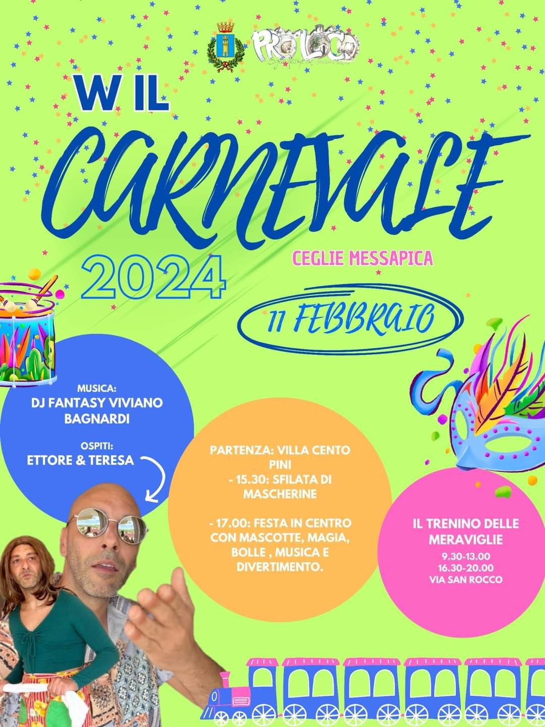 La Pro Loco di Ceglie Messapica con il patrocinio del comune organizza l’edizione 2024 di “Viva il Carnevale”.