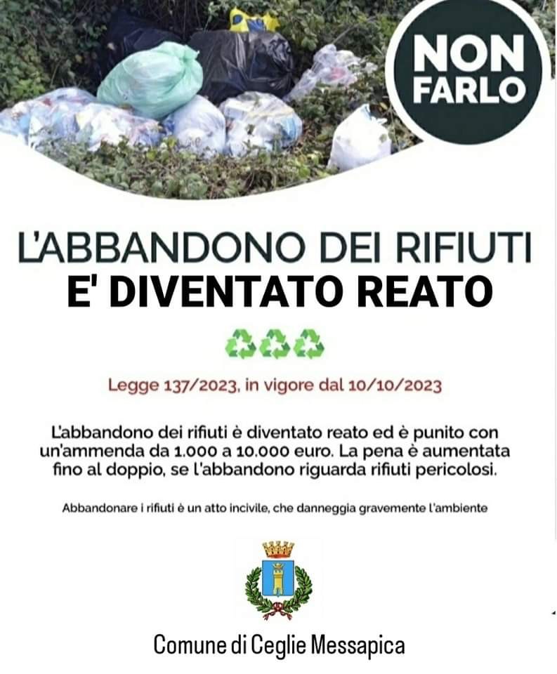 Si coglie l’occasione per ricordare che dal 10 ottobre 2023 è entrata in vigore la legge 137/2023, che stabilisce l’applicazione di una ammenda penale, e non più amministrativa, nel caso di abbandono abusivo di rifiuti compiuto da semplici cittadini. In base a quanto stabilito, chiunque compia abbandono di rifiuti è punito con una ammenda da mille a 10mila euro. La pena è aumentata sino al doppio se l’abbandono riguarda rifiuti pericolosi.