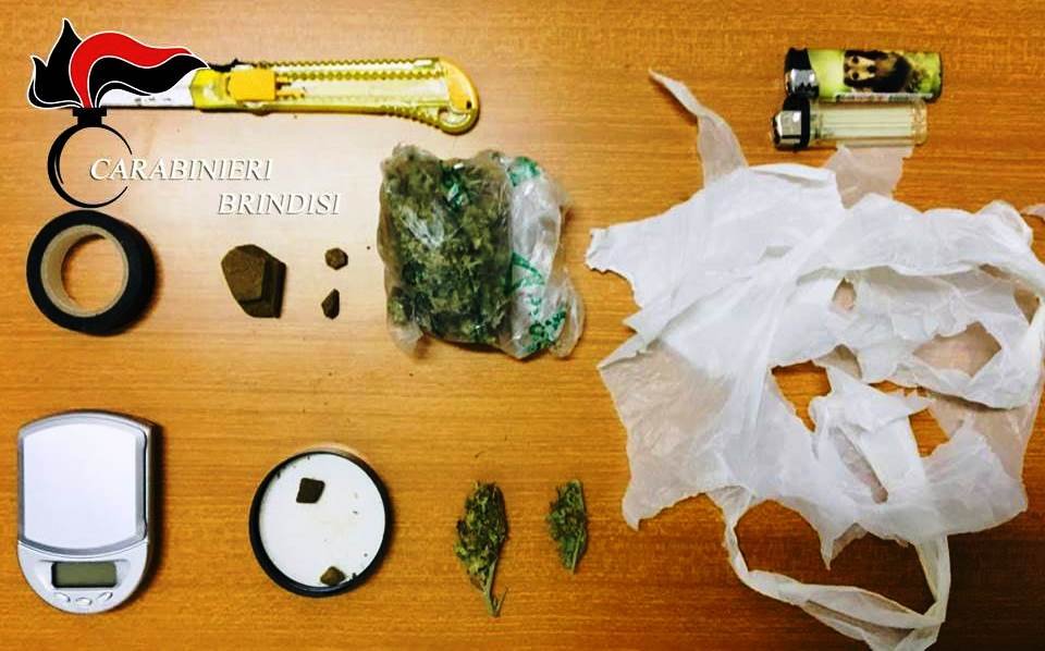 I Carabinieri della Stazione di Ceglie Messapica, nel corso di un’operazione di Polizia Giudiziaria effettuata in città e finalizzata al contrasto dello spaccio di stupefacente, hanno tratto in arresto in flagranza di reato Ligorio Angelo, 41enne del luogo. Nel corso dell’attività i militari hanno operato una perquisizione locale all’interno dell’attività commerciale gestita dall’indagato di riparazione e vendita di componenti di informatica. Durante l’esecuzione dell’atto è stato rinvenuto un contenitore in plastica all’interno del quale erano stati celati un involucro di cellophane trasparente contenente 25 grammi di marijuana suddivisa in pezzi, nonché un involucro in cellophane trasparente contenente un pezzo unico di sostanza stupefacente del tipo hashish del peso di grammi 9, nonché altri due pezzi della stessa sostanza per un totale di 1 grammo. Altresì sono stati rinvenuti vari ritagli di cellophane di colore bianco di forma circolare nonché un bilancino di precisione. La perquisizione è stata pertanto estesa all’appartamento dove in una scatola da scarpe sono stati rinvenuti ulteriori ritagli di cellophane di colore bianco della stessa tipologia di quelli rinvenuti all’interno dell’attività commerciale. La droga e il materiale rinvenuto sono stati sottoposti a sequestro.