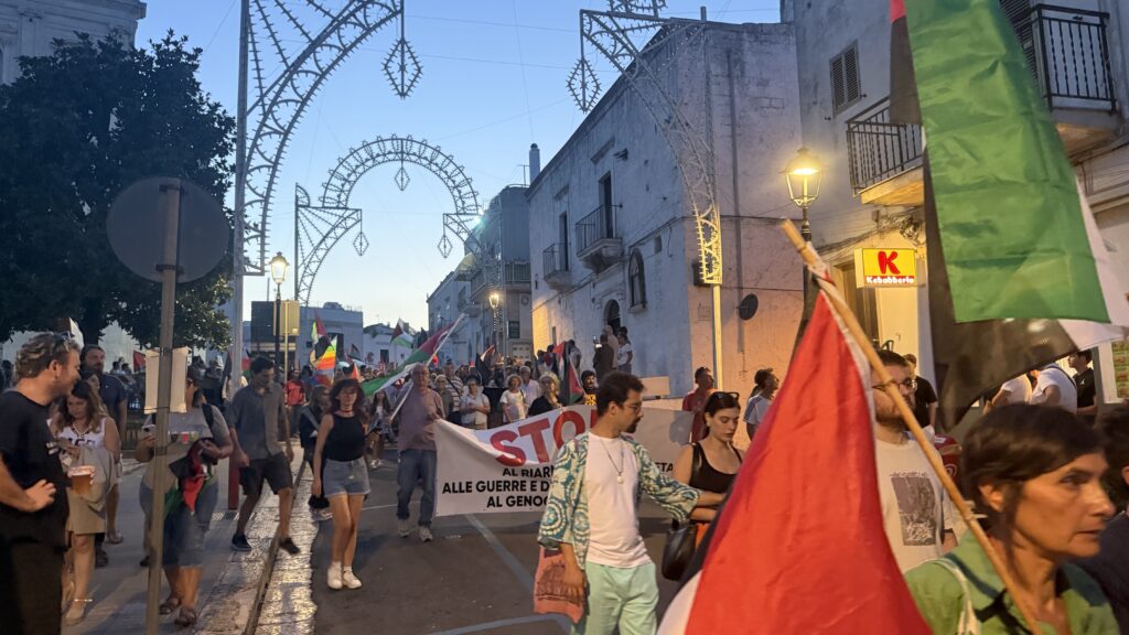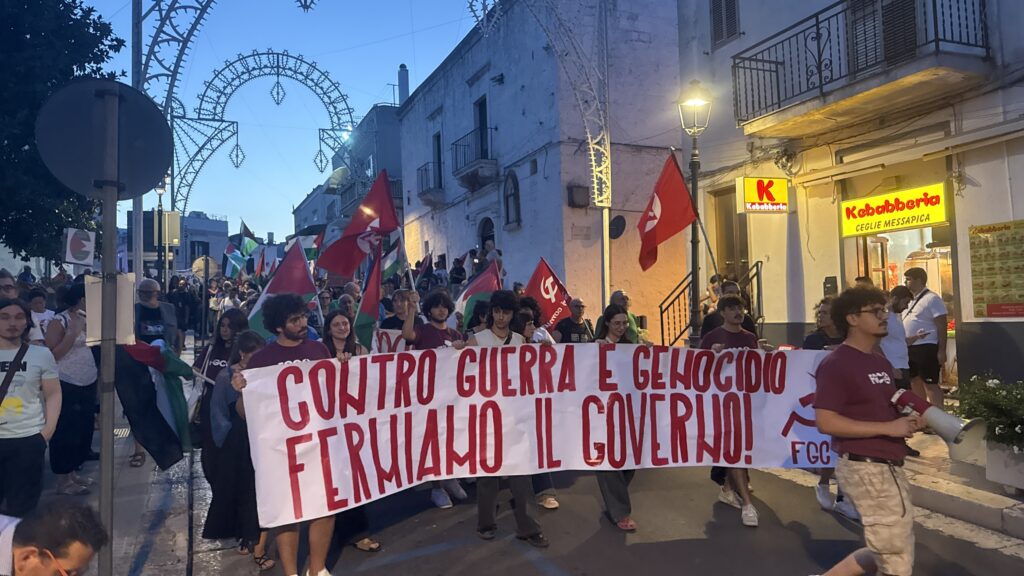 Grande, Pacifica, partecipata Manifestazione con corteo a Ceglie Messapica. Centinaia di giovani, bambini e capelli bianchi a chiedere la cessazione del Genocidio perpetrato dal governo fascista di Netanyahu con il suo esercito nazista. Mentre in piazza plebiscito intervistavano gli esponenti del governo con Salvini non presente. Esponenti del governo Meloni corresponsabile delle atrocità contro I palestinesi che vengono sostenuti in armi ed appoggio politico economico.