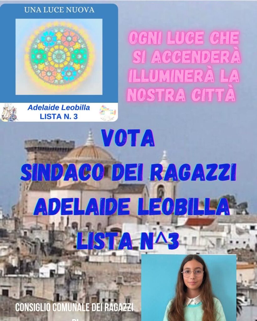 Presentati i candidati alla carica di Sindaco e le relative liste che porteranno alla composizione del nuovo Consiglio Comunale dei Ragazzi, progetto della scuola “L. da Vinci” del Secondo Istituto Comprensivo, guidato dal dirigente scolastico Francesco Daniele Laterza, in collaborazione con l’Amministrazione comunale.