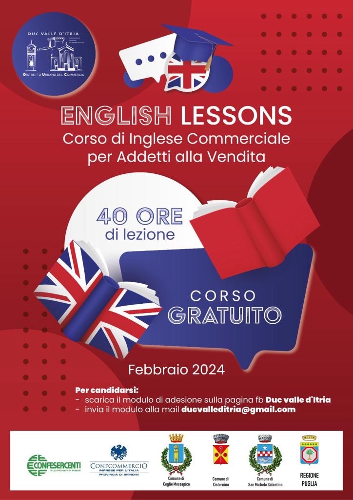Il Distretto Urbano del Commercio “Valle d’Itria” intende organizzare un Corso di “Inglese Commerciale (base)” a titolo gratuito riservato agli operatori commerciali e collaboratori.