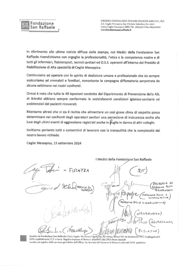 I Medici della Fondazione San Raffaele: “Rivendichiamo con orgoglio la professionalità delle figure che operano nella struttura”
