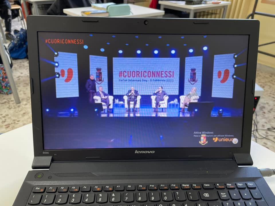 Giornata mondiale per la sicurezza in Rete. Il Secondo Istituto Comprensivo” – Together for a better Internet” .Le classi prime della scuola media “Vinci “ si sono collegate con la scrittrice Cinzia Capitanio mentre le classi seconde e terze si sono collegate con l’iniziativa promossa da Unieuro e la Polizia Postale “Cuori Connessi”.
