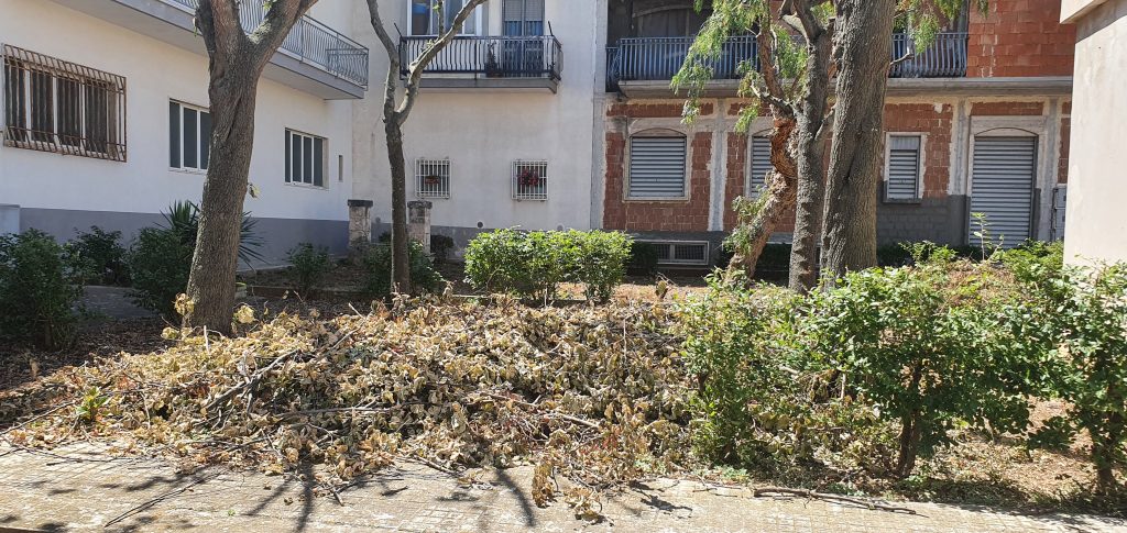 Abbiamo ricevuto nei giorni scorsi la segnalazione che in Piazza Vincenzo Chirico, dopo aver provveduto a potare gli alberi tre settimane fa, non è stato rimosso il materiale di potatura. Con il passare dei giorni il materiale diventa sempre più secco rischiando di provocare anche qualche incendio.