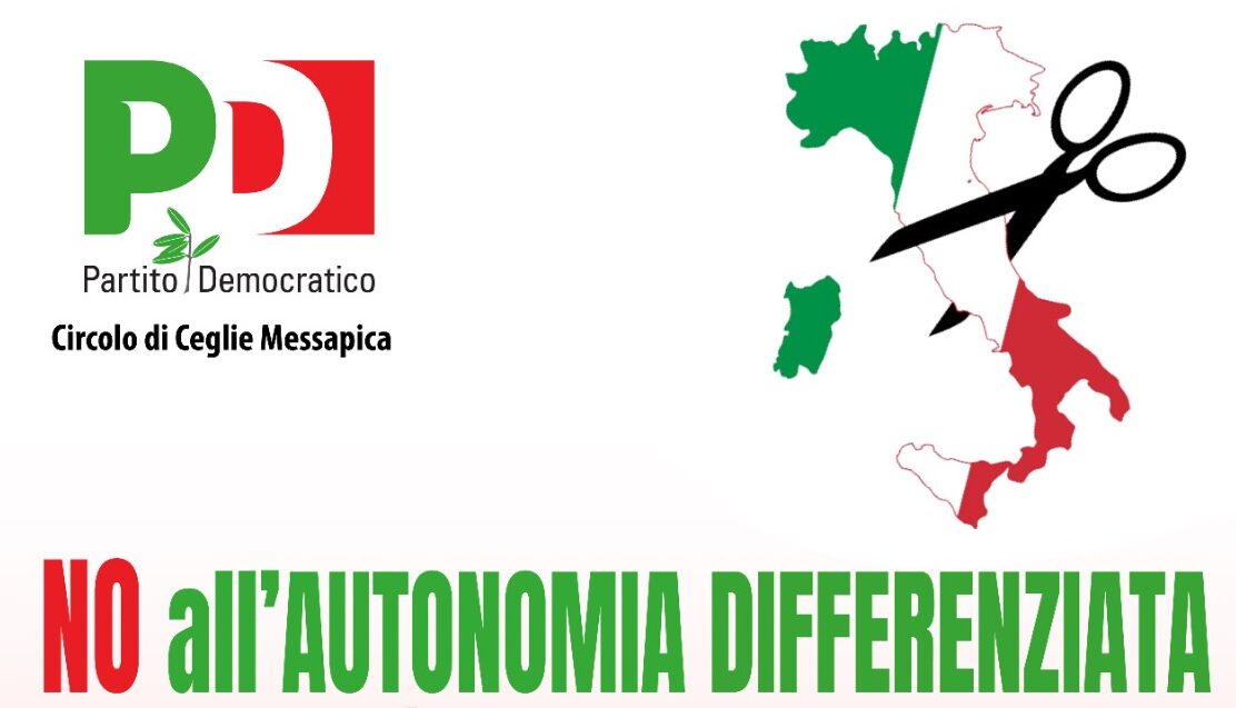CEGLIE MESSAPICA -Il Partito Democratico di Ceglie Messapica si mobilita per illustrare alle cittadine e ai cittadini le ragioni per cui “è necessario fermare e impedire che sia realizzato il progetto di autonomia differenziata voluto dal ministro Calderoli e sostenuto dal Governo di centrodestra”. L’ iniziativa si terrà venerdì 15 marzo, nella sala conferenze della Scuola Oxford ( via San Paolo della Croce), alle ore 18:00. Ad aprire l’iniziativa saranno i saluti di Maurizio Semeraro, segretario del circolo PD Ceglie che introdurrà il tema. A seguire, gli interventi di Piermassimo Chirulli, avvocato e docente a.c. dell’Università di Bari, Gabriella Ciccarrone, docente e rappresentante FLC Cgil, Antonio Macchia, segretario generale Cgil Brindisi e Claudio Stefanazzi, deputato e vice presidente Commissione parlamentare per questioni regionali e VI commissione finanze. Gli interventi saranno coordinati dal giornalista Mino De Masi.
