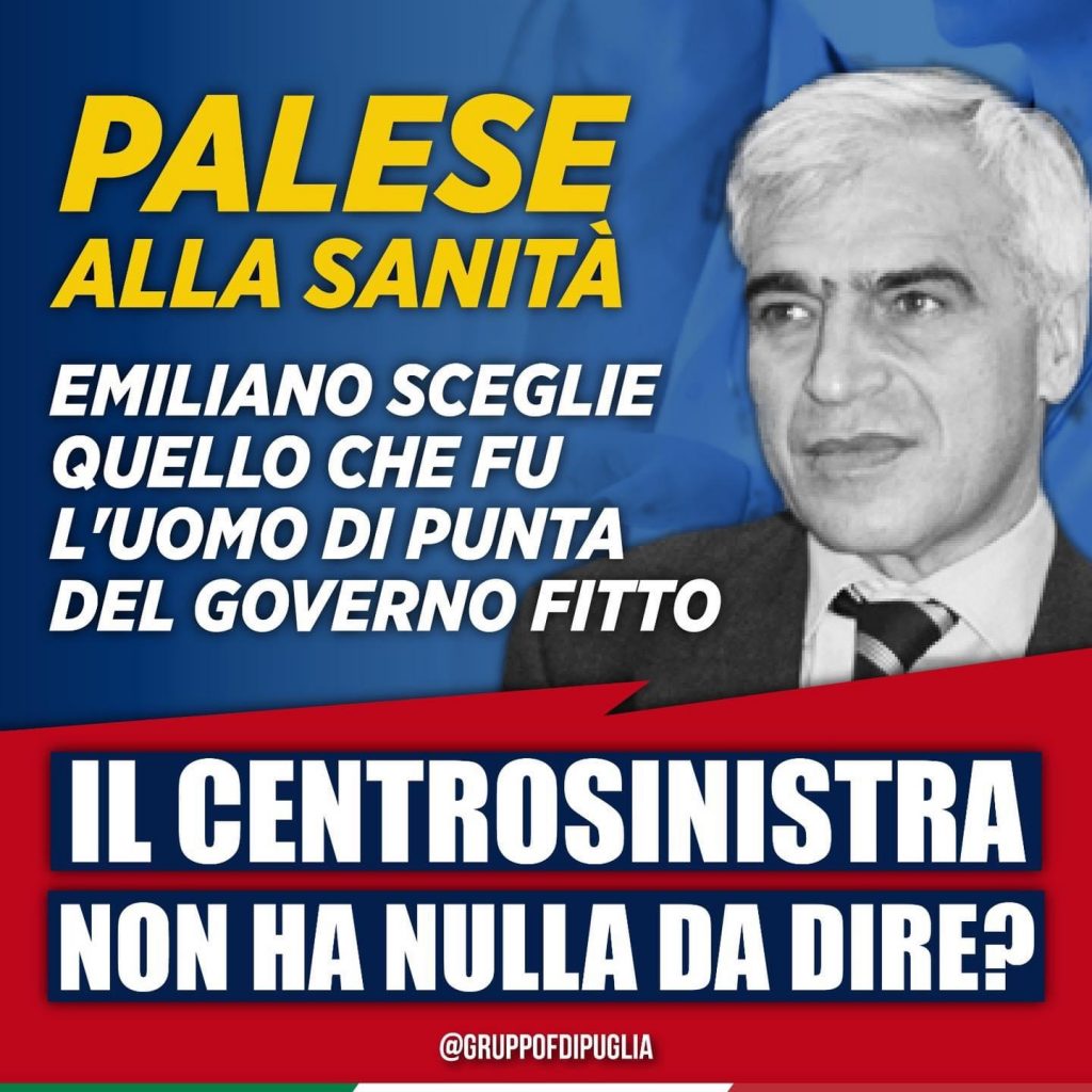 Quella Sanità targata Fitto tanto osteggiata dal centrosinistra. Insomma, Palese era il protagonista di quell’epoca per questo era uno dei politici che il centrosinistra contestava fortemente.