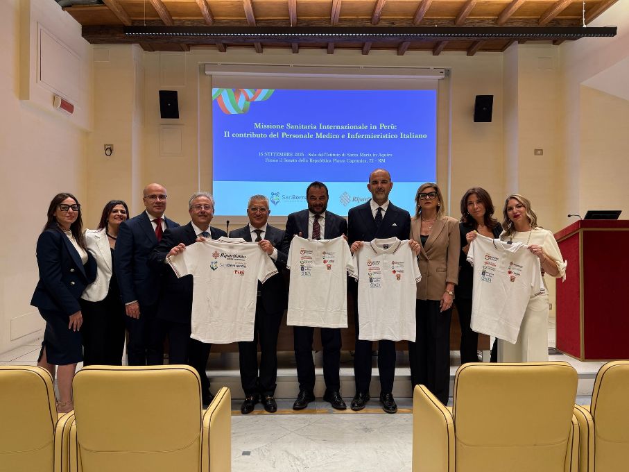 Roma, 16 settembre 2025 – Si è svolta oggi, 16 settembre 2025, alle ore 15.00 presso la sala Santa Maria in Aquiro del Senato della Repubblica, la conferenza stampa di presentazione della Missione sanitaria in Perù organizzata da Ripartiamo APS in collaborazione con la Cooperativa Sociale San Bernardo.Tra i partecipanti alla missione, spiccano i nomi di Roy De Vita, Direttore della Divisione di Chirurgia Plastica dell’Istituto dei Tumori “Regina Elena” di Roma, e Walter Morale, Direttore della UOC di Nefrologia e Dialisi dell’ASP di Ragusa, che già in passato hanno collaborato con Ripartiamo APS in precedenti missioni mediche in Nepal, Madagascar e Tanzania.Alla conferenza stampa sono intervenuti, oltre a Roy De Vita, Don Carmelo Terranova e Giuseppe Natale, anche Ignazio Zullo, capogruppo FDI X Commissione Senato; Maurizio De Nuccio, direttore Generale della Asl Brindisi; Maria Luisa Nardulli, dirigente Medico presso la U.O.C. Di Chirurgia Plastica dell’Ospedale Perrino di Brindisi; Rosaria Martina, medico Specialista in Oncologia ed Epatologia; Concetta Marco, Psicologa. Per Ripartiamo APS è intervenuta Piera Vincenti. L’incontro è stato moderato da Andrea Giambruno.
