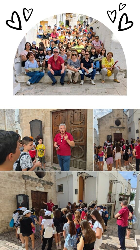 A seguire gli alunni sono stati condotti ad ammirare e percorrere paesi della Valle d’Itria per scoprirne caratteristiche geografiche, storia e soprattutto aspetti antropici e architettonici: trulli e tetti a “cummerse”- Martina Franca – Locorotondo, guidati dalla professoressa Valentina Mastronardi…. e Alberobello.