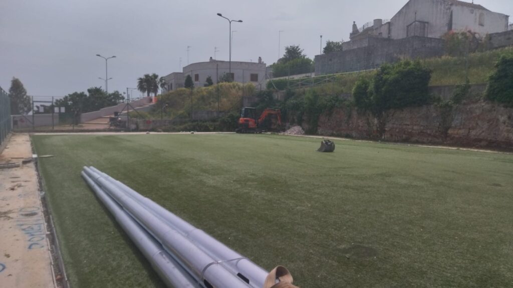 Tra gli interventi previsti: Realizzazione del nuovo manto erboso in erba sintetica, riparazione ed installazione recinzione esterna ed interna, tracciatura del campo da gioco, installazione delle strutture ed accessori (porte, panchine ecc.), interventi finalizzati anche ad omologare la struttura per lo svolgimento di attività di Calcio a 5.