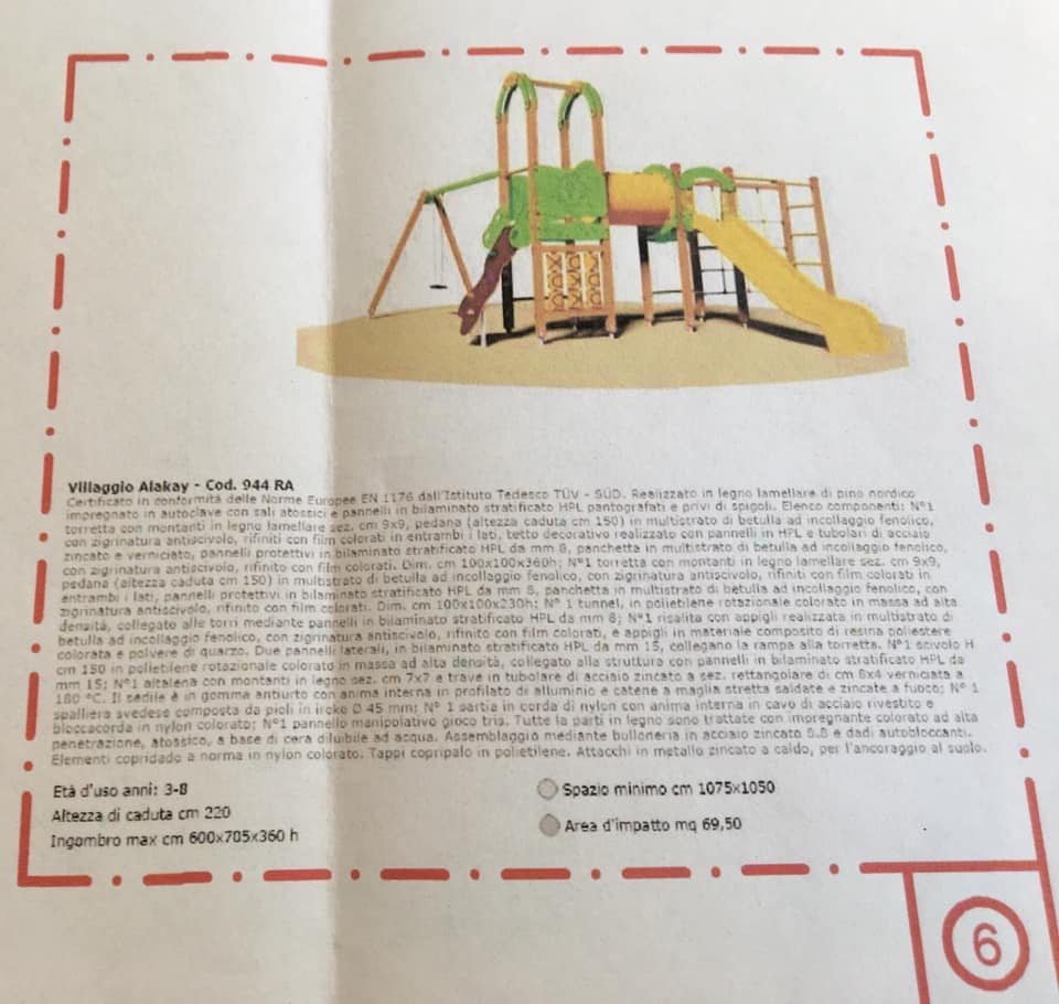 Pertanto, dopo gli interventi di riqualificazione integrale del manto stradale e della realizzazione della segnaletica orizzontale, molto presto saranno sostituiti tutti i giochi con delle nuove attrezzature ideone ed a norma.